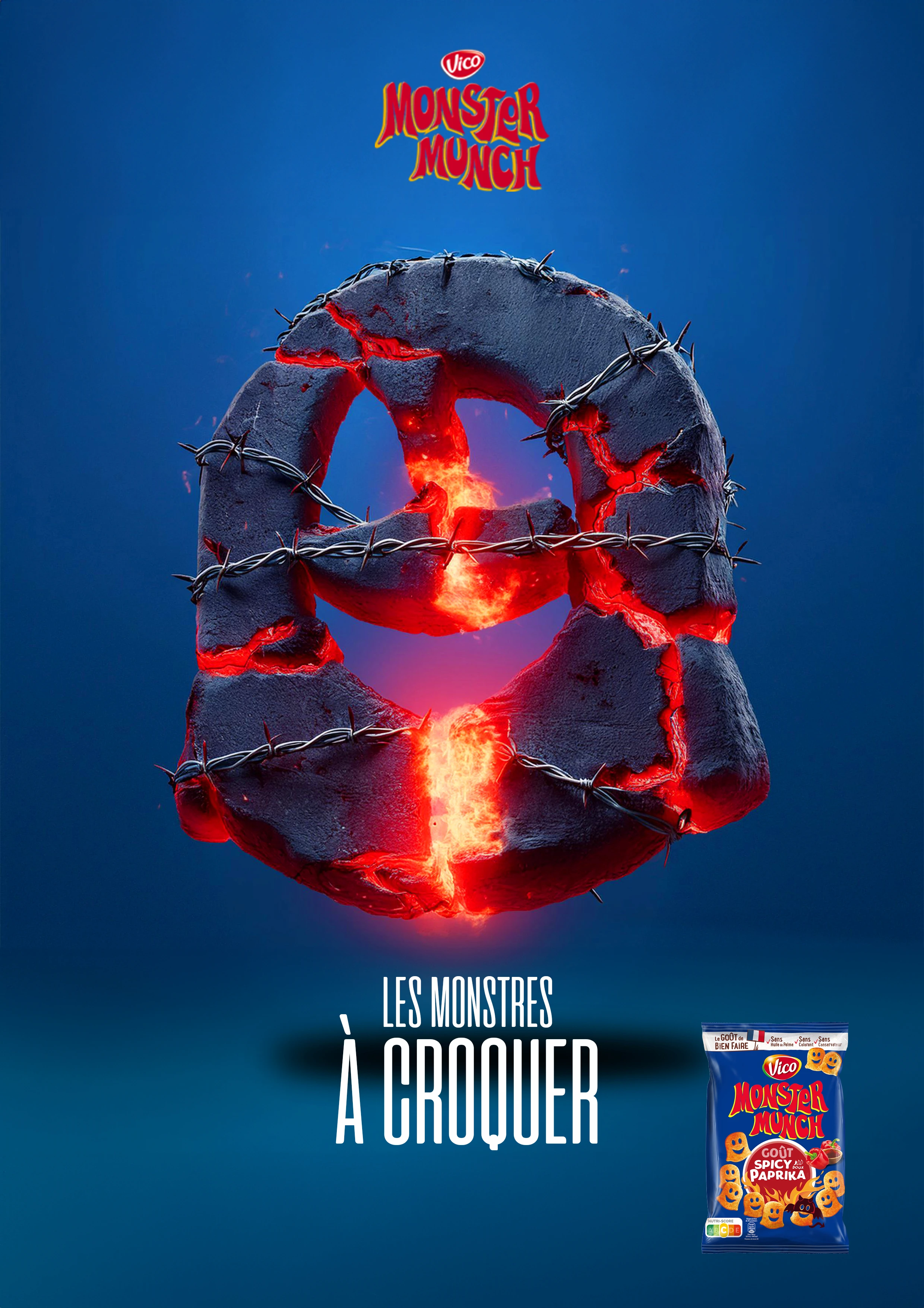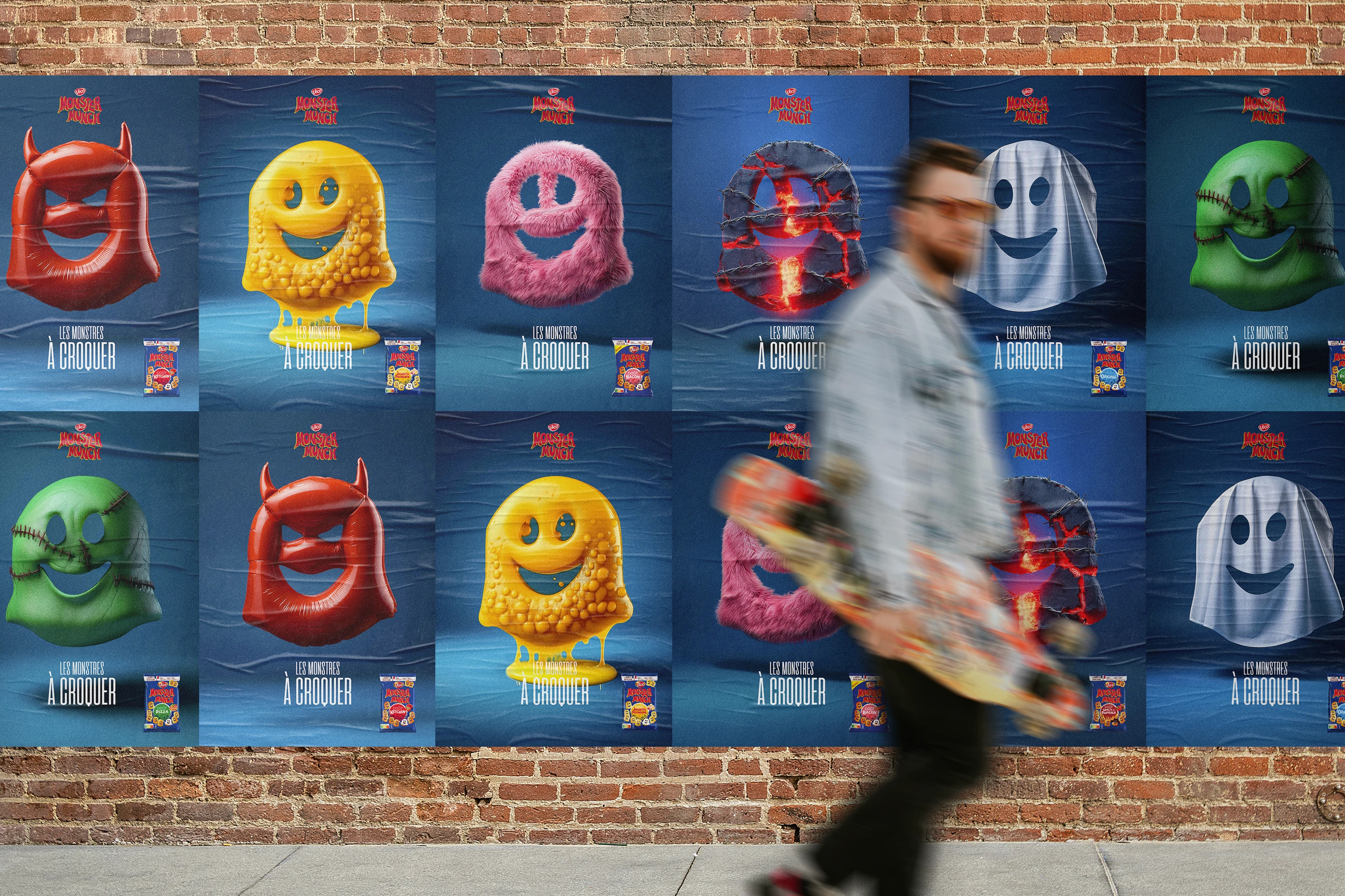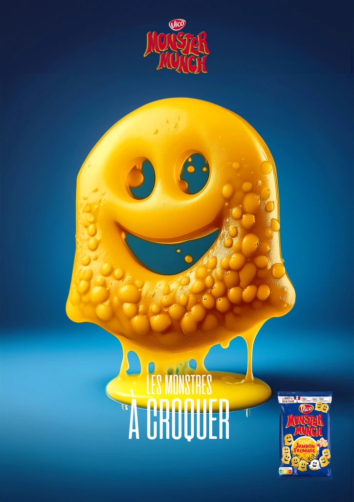 Dans cette campagne publicitaire, Monster Munch détourne sa forme iconique pour incarner visuellement chaque saveur de la gamme. Chaque visuel devient un véritable "monstre à croquer", où la texture et les éléments graphiques traduisent les sensations gustatives.
